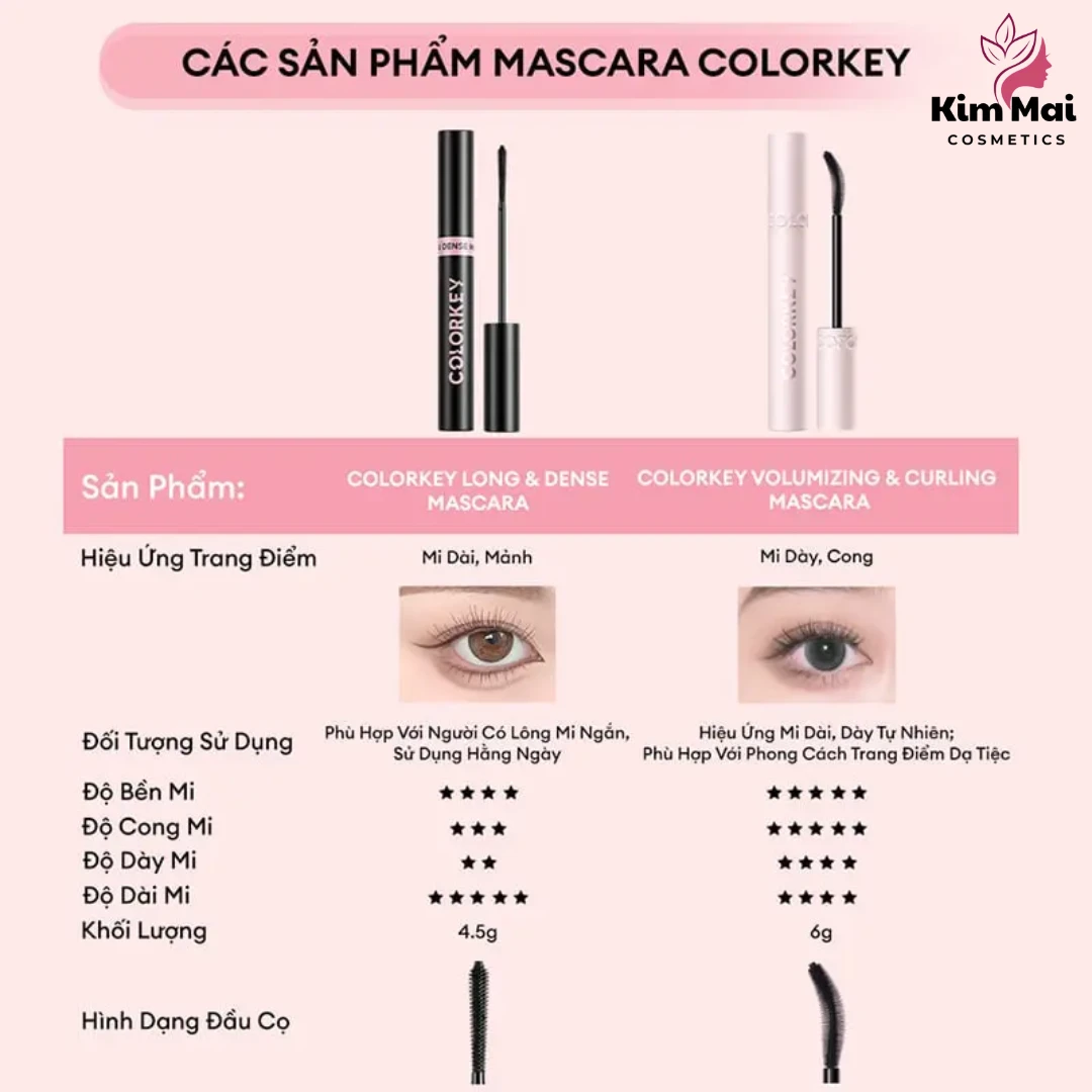 Mascara lâu trôi Colorkey Hỗ Trợ Giúp Mi Dài Và Tơi, Nhanh Khô, Không Lem Trôi 4.5g