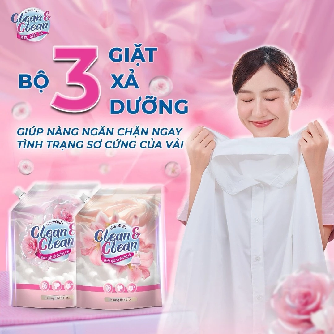 NƯỚC GIẶT XẢ CLEAN & CLEAN – HƯƠNG THƠM LÂU, VẢI MỀM MỊN NHƯ MỚI