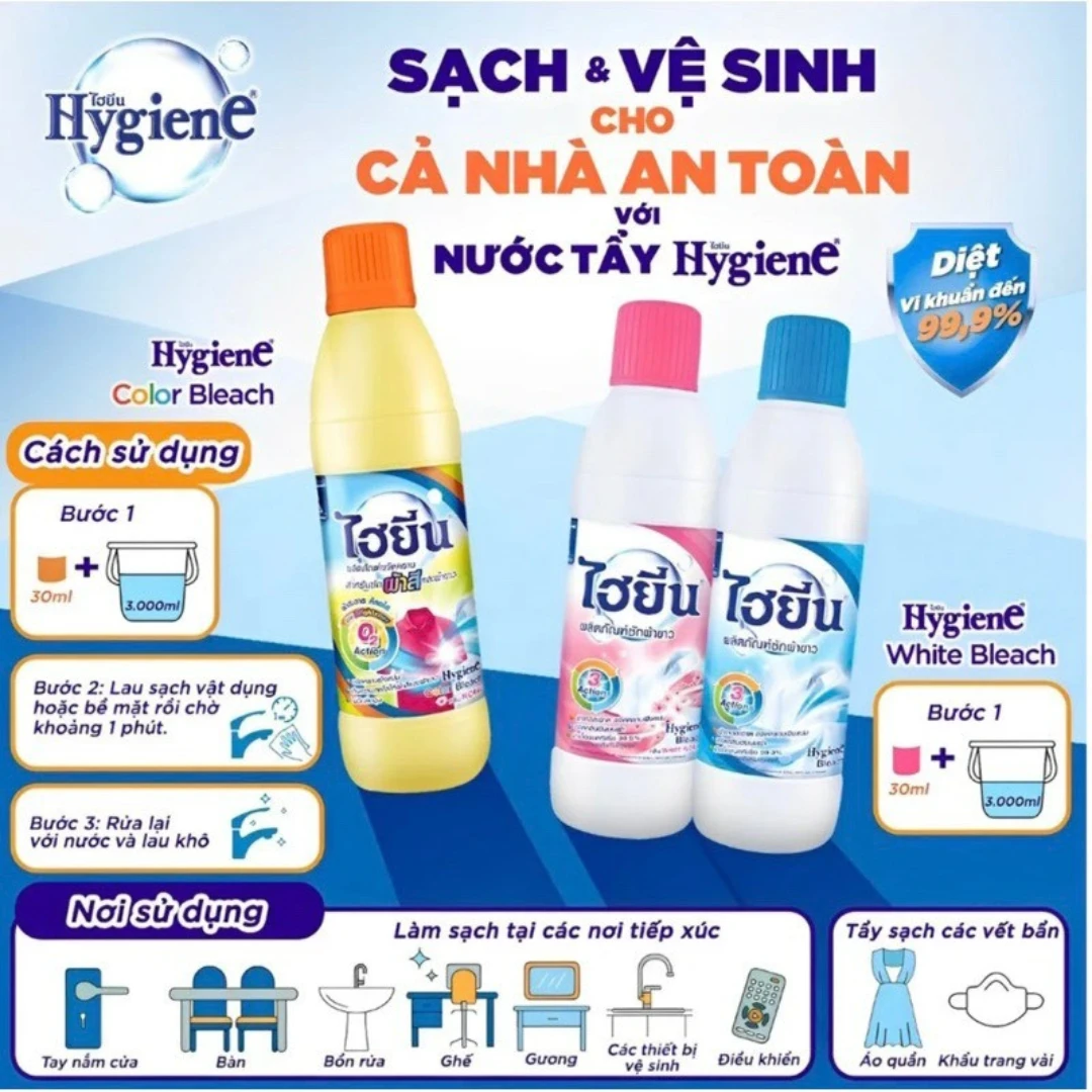 NƯỚC TẨY QUẦN ÁO MÀU & ÁO TRẮNG HYGIEN THÁI LAN 600ML – TẨY SẠCH VẾT BẨN, GIÚP QUẦN ÁO LUÔN MỚI
